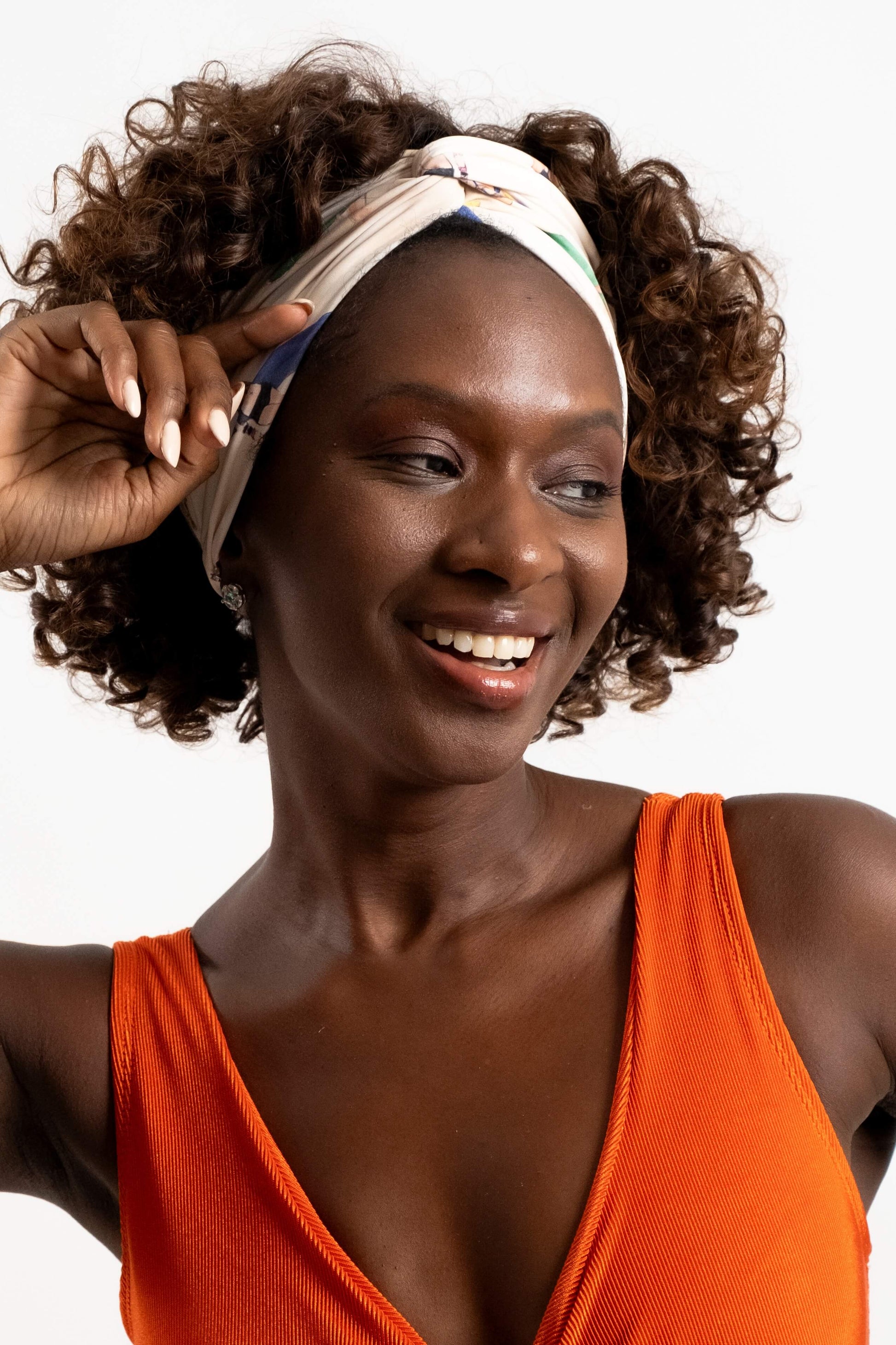 Faixa  com elo  na frente, duplo tecido com franzido atrás.