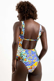 Maiô, cobertura média, decote clássico na frente e atrás mais profundo, com tira fina na horizontal exposta nas costas, sem bojo.