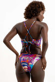 Maiô, Cobertura Média, frente única com amarração cruzada atrás nas costas, sem bojo.