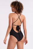 Maiô, com bojo removível, alças cruzadas atrás, full coverage.