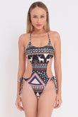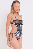 Maiô medium coverage, engana mamãe, amarração lateral e alças cruzada nas costas, sem bojo.