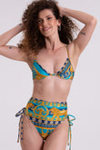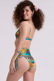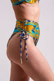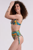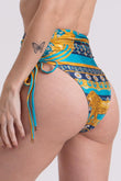 Bottom tipo hot pants, full coverage com altura das laterais ajustável a partir das amarrações.