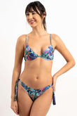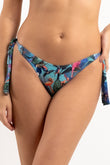 A parte inferior de amarrar nas laterais é totalmente ajustável ao corpo, cobertura média.