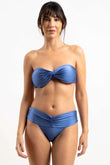 Bottom medium coverage, cós largo, com detalhe franzido nas laterias,frente e costas do cós.