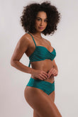 Bottom medium coverage, cós largo, com detalhe franzido nas laterias,frente e costas do cós.