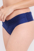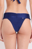 Bottom medium coverage, cós largo, com detalhe franzido nas laterias,frente e costas do cós.