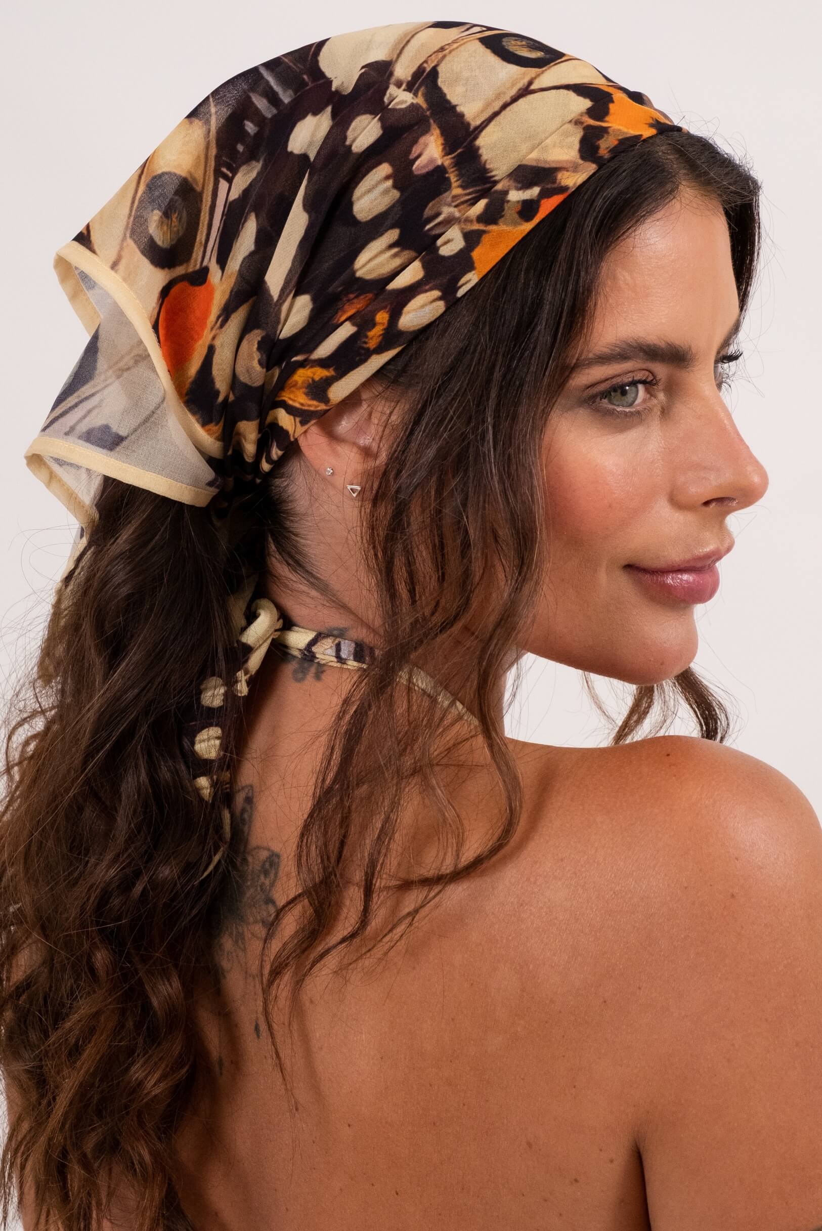 O acessório que transforma qualquer look! Com medidas de 65 cm x 65 cm, este lenço Riviera é perfeito para adicionar um toque de charme e personalidade ao seu visual. Pode ser usado de várias formas: nos cabelos como faixa, turbante, rabo de cavalo ou bandana, além de funcionar como detalhe em bolsas ou no pescoço. Confeccionado em tecido leve, macio e confortável, é ideal para o dia a dia, viagens ou momentos de lazer ao ar livre. Um item curinga que une estilo, praticidade e autenticidade.