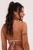 Top com sustentação média, com aro em V, amarração costa e pescoço.