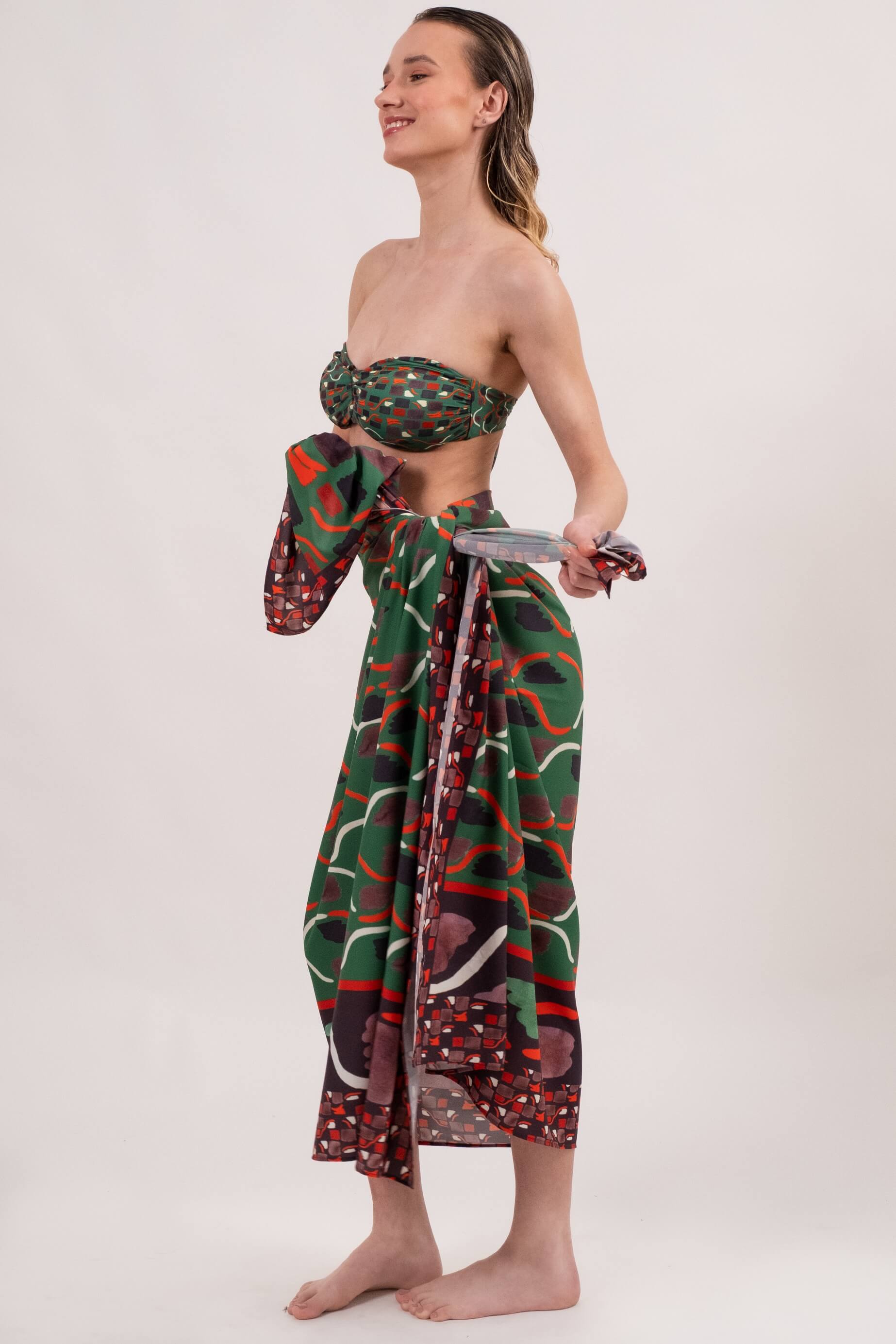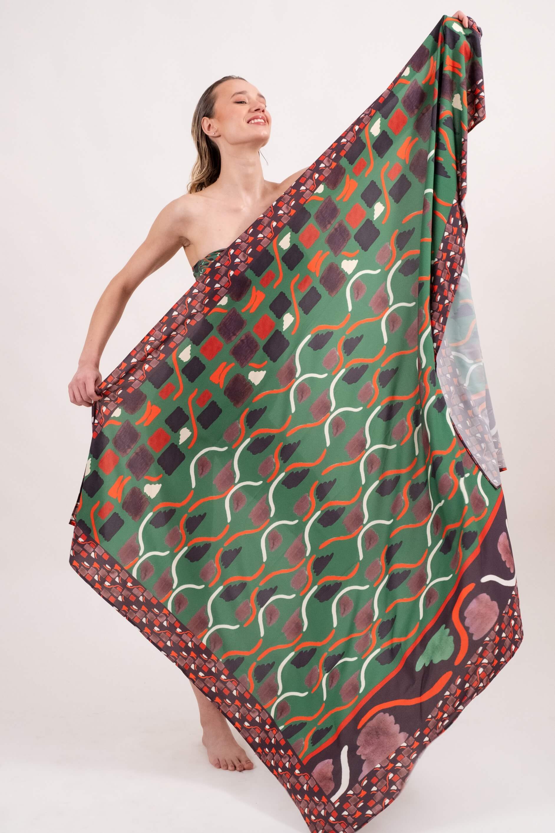 Versatilidade e estilo em uma única peça! com medidas de 200 cm x 130 cm, este panneaux é perfeito para compor diferentes looks á beira-mar. Use como saia, vestido, top ou saída de praia - tudo depende do seu mood e criatividade. Confeccionado em tecido leve e de secagem rápida, é prático, elegante e essencial na sua mala de viagem. Ideal para quem busca conforto sem abrir mão do estilo.