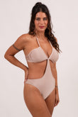 Maiô Medium Coverage, com decote na frente, amarração nas costas, engana mamãe, sem bojo.