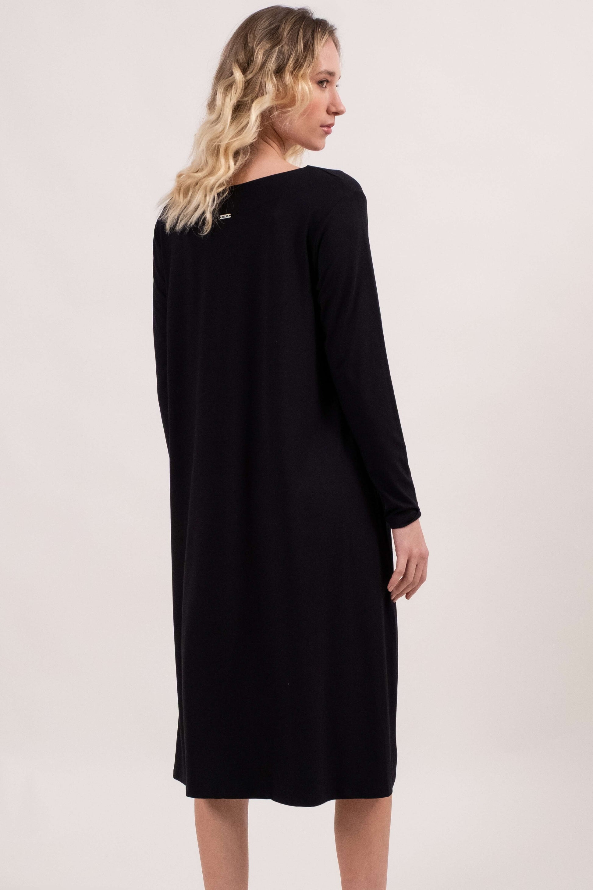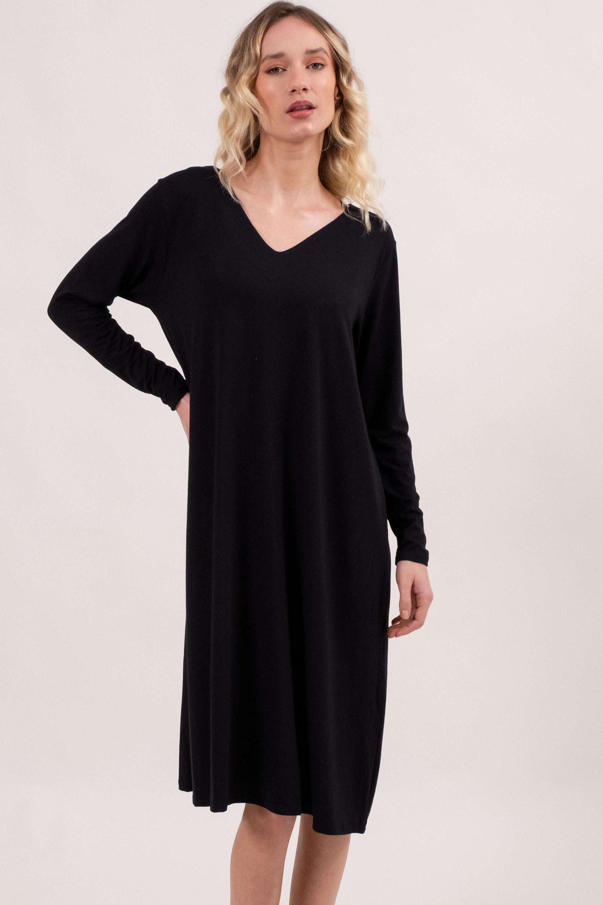 O Vestido Glória  traduz o equilíbrio perfeito entre conforto e sofisticação. Com comprimento midi e mangas 3/4 , ele é feito em viscomalha leve, que oferece um caimento fluido e toque macio na pele.