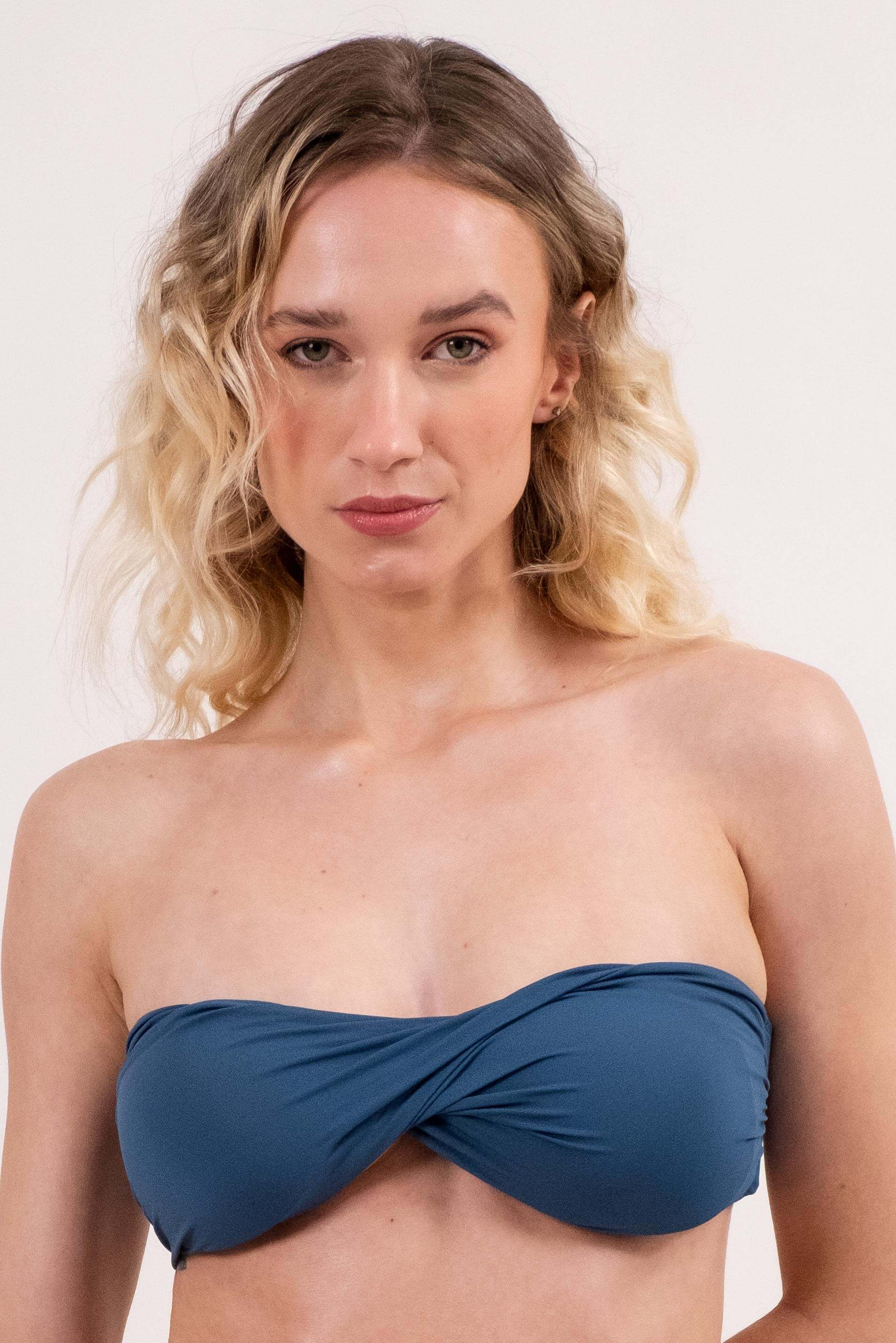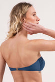Top de sustentação média, tomara que caia, bojo fixo e alçada atualizada, fecho nas costas.