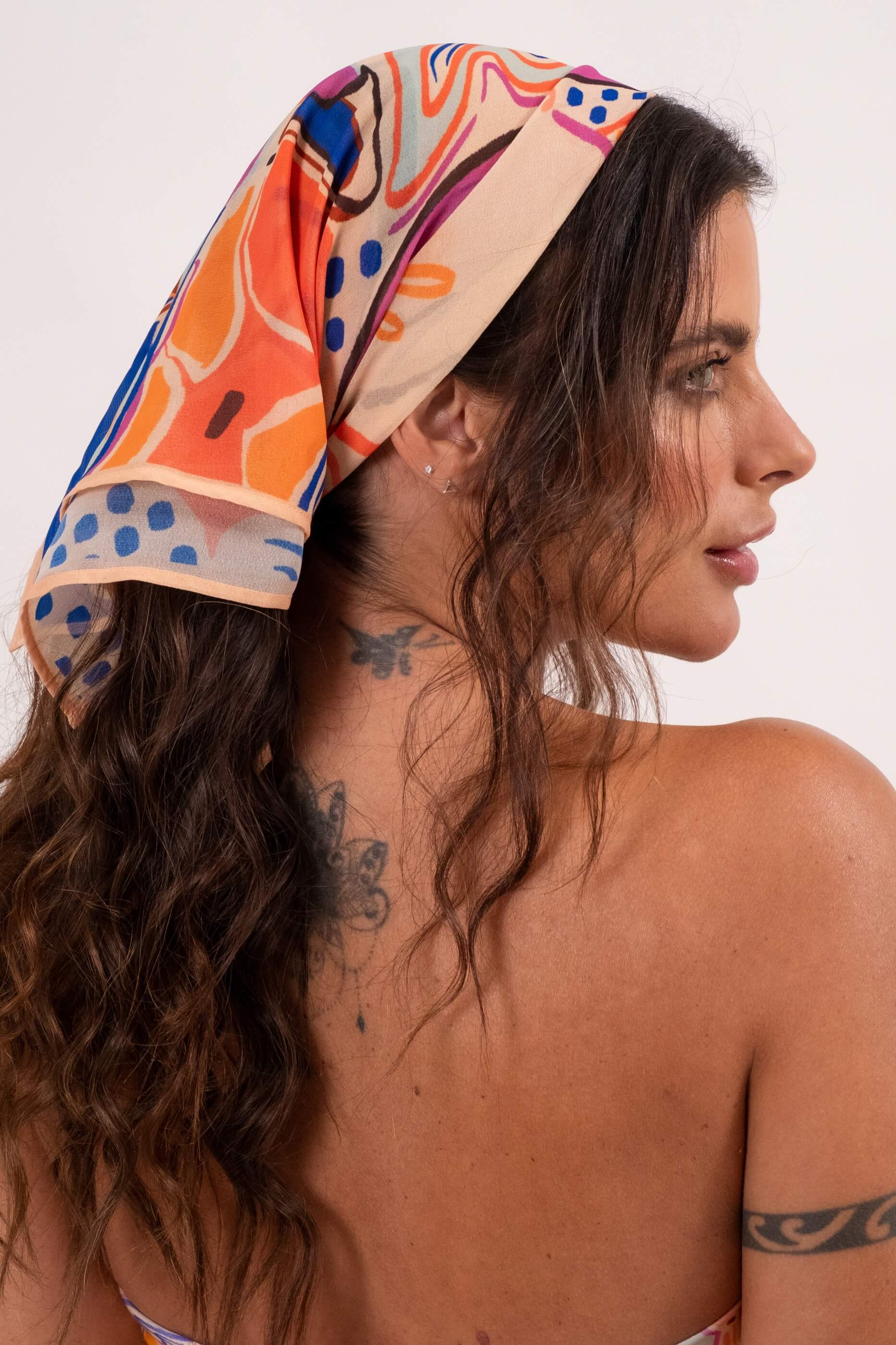 O acessório que transforma qualquer look! Com medidas de 65 cm x 65 cm, este lenço Riviera é perfeito para adicionar um toque de charme e personalidade ao seu visual. Pode ser usado de várias formas: nos cabelos como faixa, turbante, rabo de cavalo ou bandana, além de funcionar como detalhe em bolsas ou no pescoço. Confeccionado em tecido leve, macio e confortável, é ideal para o dia a dia, viagens ou momentos de lazer ao ar livre. Um item curinga que une estilo, praticidade e autenticidade.