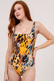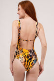 Maiô, cobertura média, decote clássico na frente e atrás mais profundo, com tira fina na horizontal exposta nas costas, sem bojo.