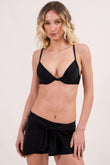 Shorts com elástico atrás no cós, e detalhe de amarração na frente.